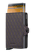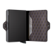 With two Cardprotectors, the Twinwallet stores twice as much while allowing you to access specific cards quickly, and remaining compact in size. The exterior holds banknotes, receipt and cards, while the aluminum Cardprotector allows you to slide out cards with one simple motion and protects them from bending, breaking and unwanted wireless communication.