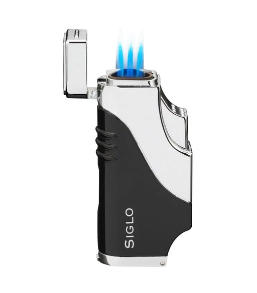 SIGLOThe SIGLO Triple Flame Lighter makes lighting a cigar more efficient. It features a gas window, flame adjuster control and a cigar puncher.
